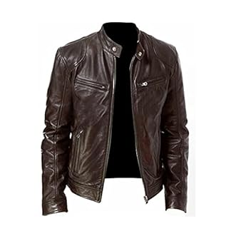 WZHZJ. Herren Lederjacke Slim Fit Stehkragen PU. Jacke männliche Motorrad Revers diagonale Reißverschlussjacken (Color : Brown, Size : 3XL code)