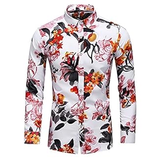Smejs Männer Shirts Frühling Blumendruck Männer Shirts Langarm Lässig gedruckt Slim Dress Hemden (Color : B, Size : XL code)